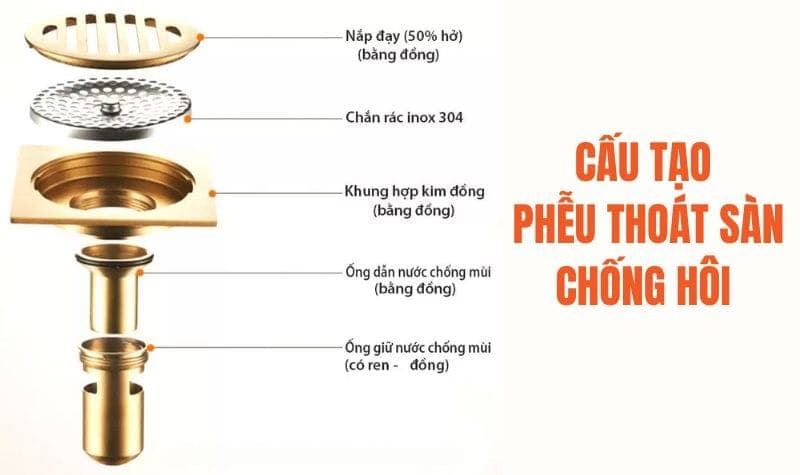 Cấu tạo của phễu thoát sàn chống mùi hôi